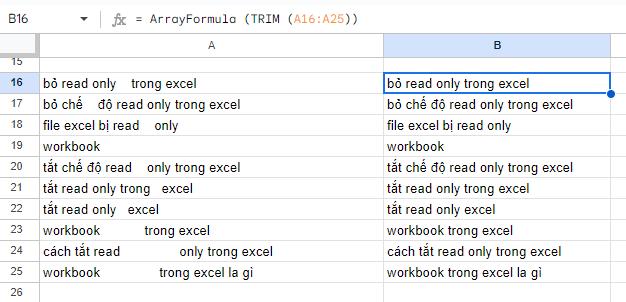 Nếu bạn phát hiện ra một số khoảng trắng thừa trước hoặc sau dữ liệu trong bảng tính, hãy dùng TRIM của Google Sheets.