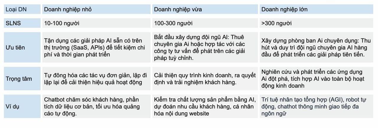 Xu hướng sử dụng AI theo quy mô doanh nghiệp có thể được sắp xếp như sau: